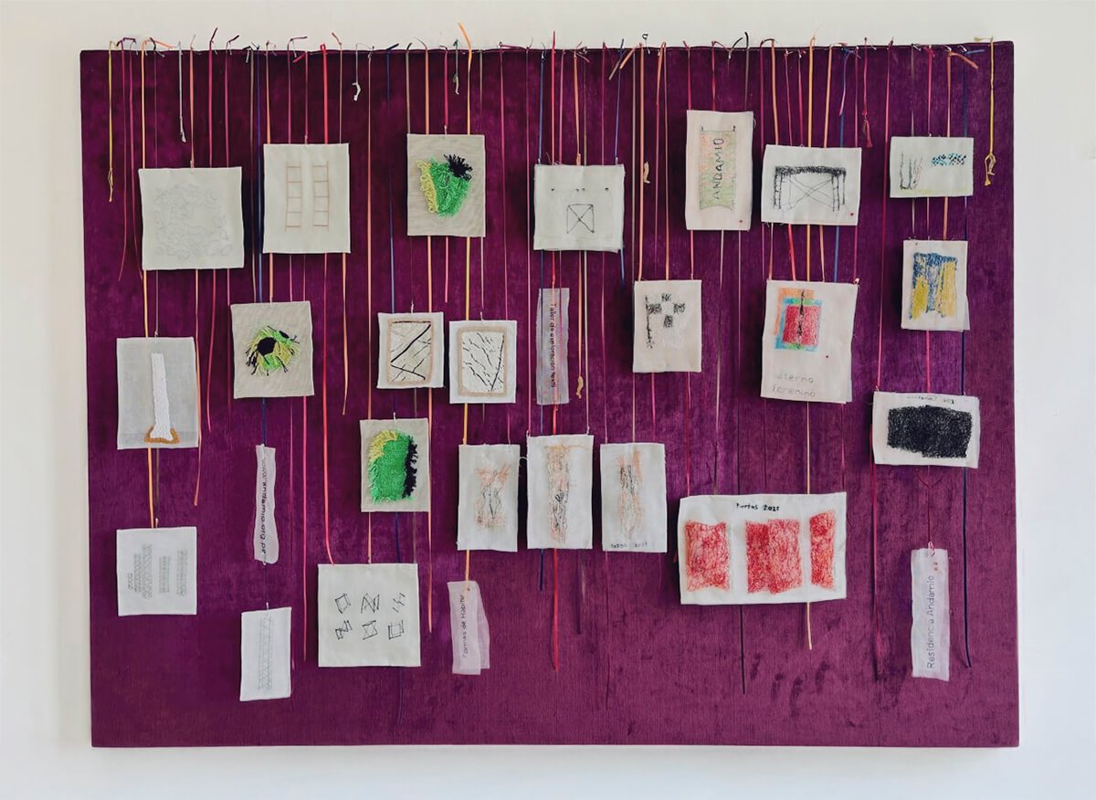 está conformada por dibujos aéreos, retratos bordados o escultóricos, instalaciones y proyectos colaborativos que van encontrando sus propios medios materiales y expresivos en cada proyecto. Los últimos años ha buscado