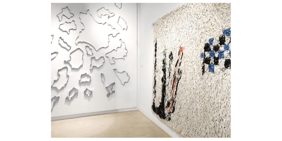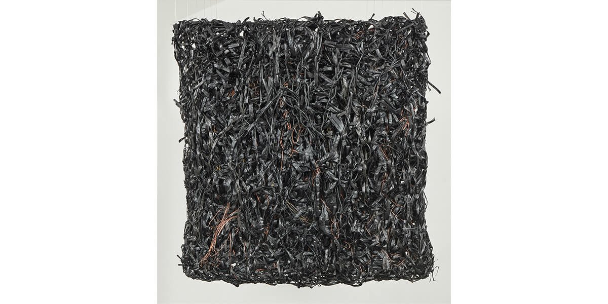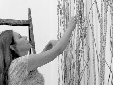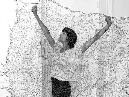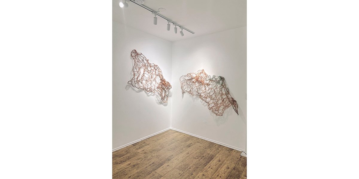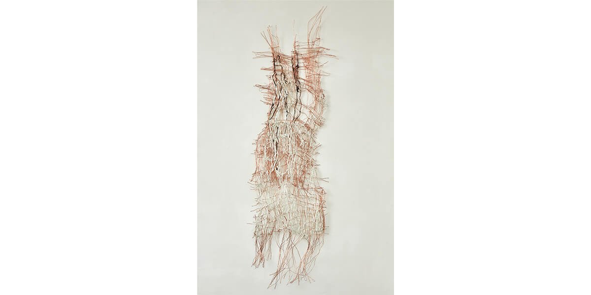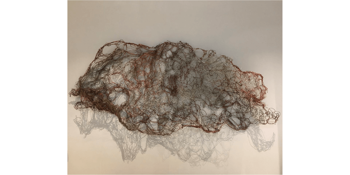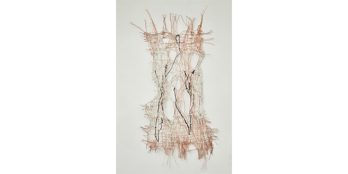 incluir materiales desechados por la industria y metales como cobre, bronce, níquel y acero inoxidable. El tejido no sólo es una constante en su trabajo, sino que –a partir de líneas vinculadas al dibujo– le ha permitido