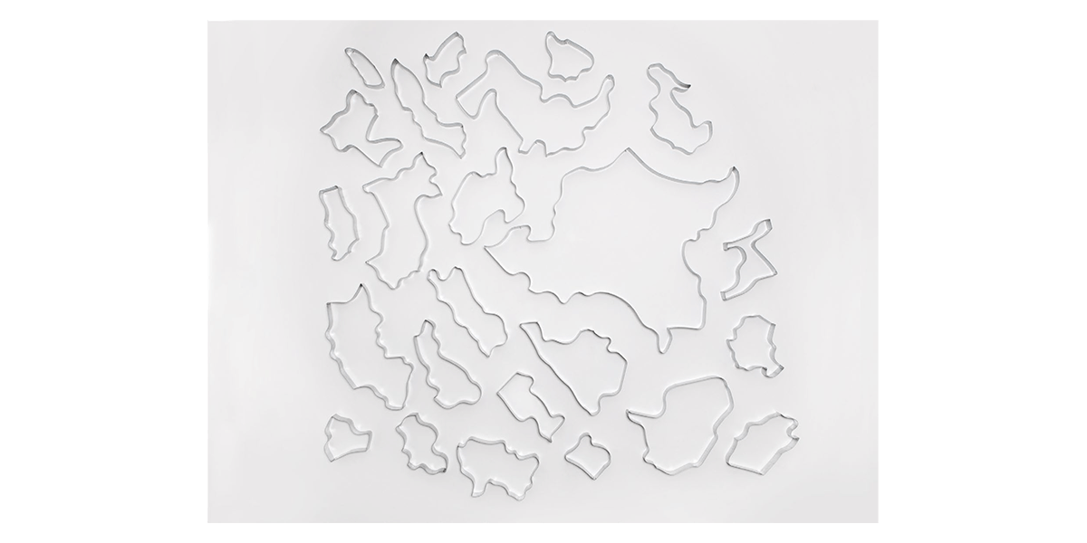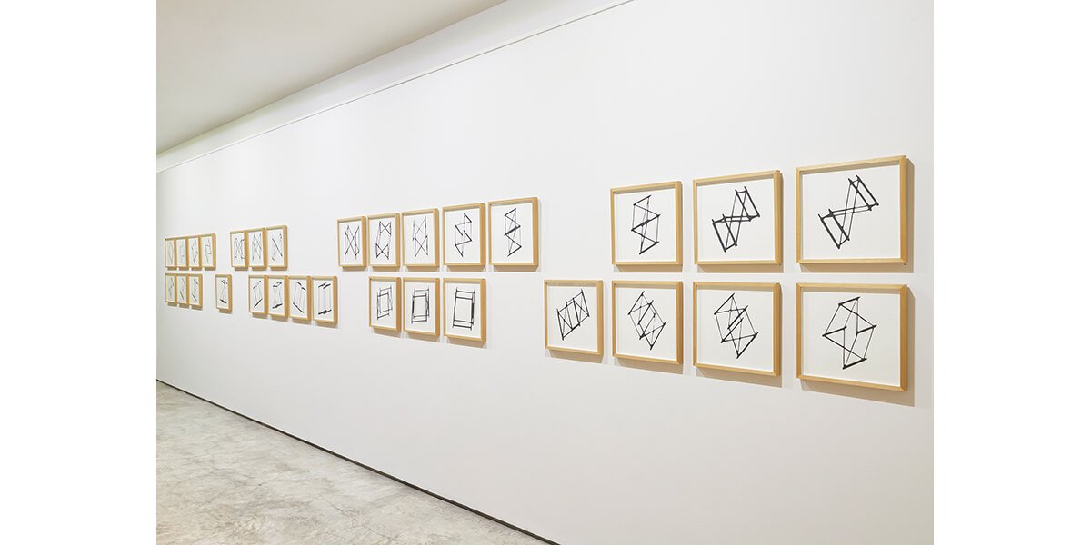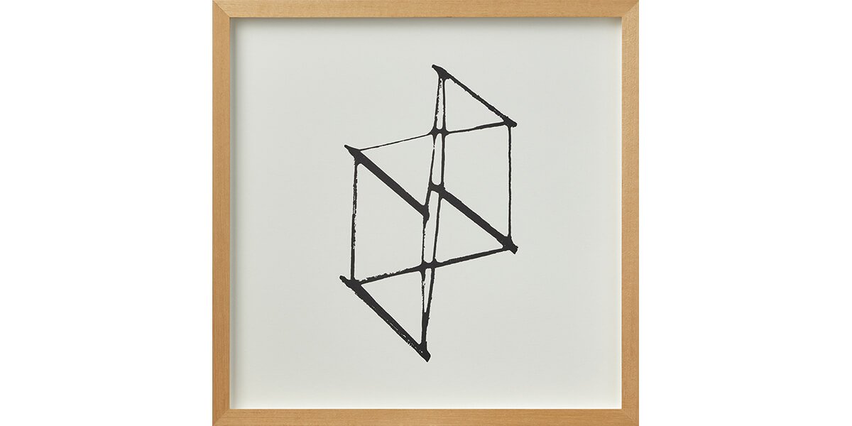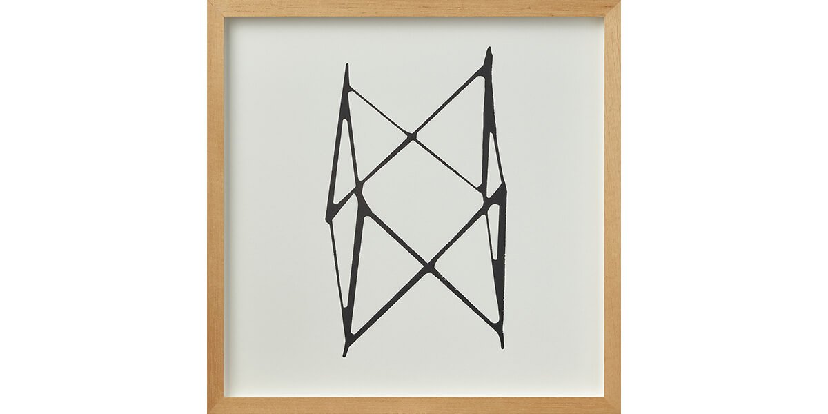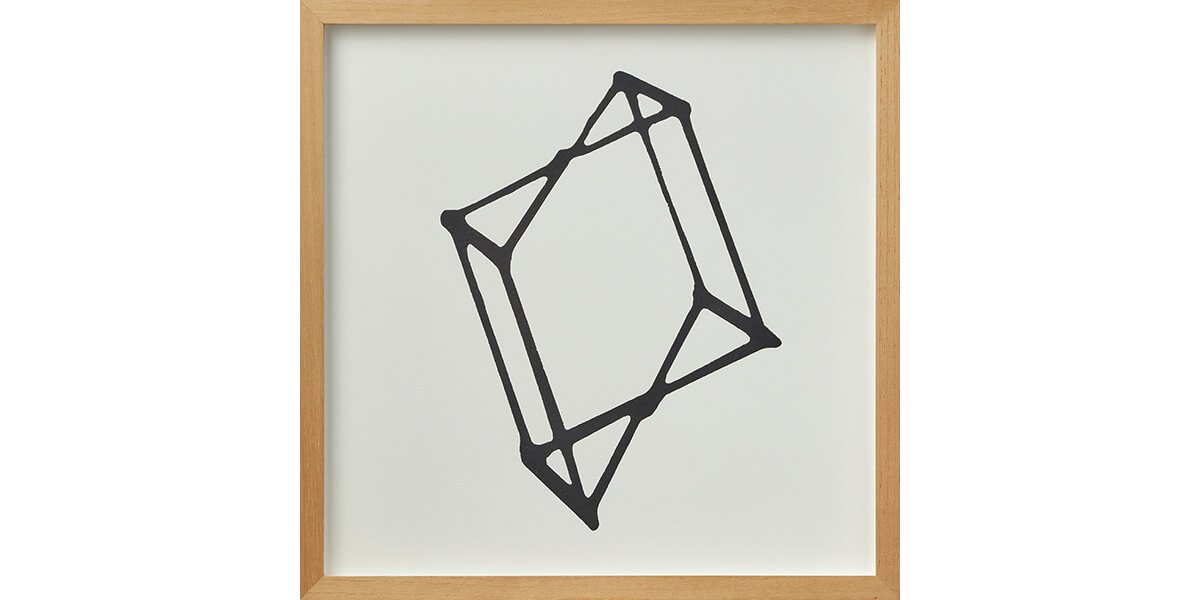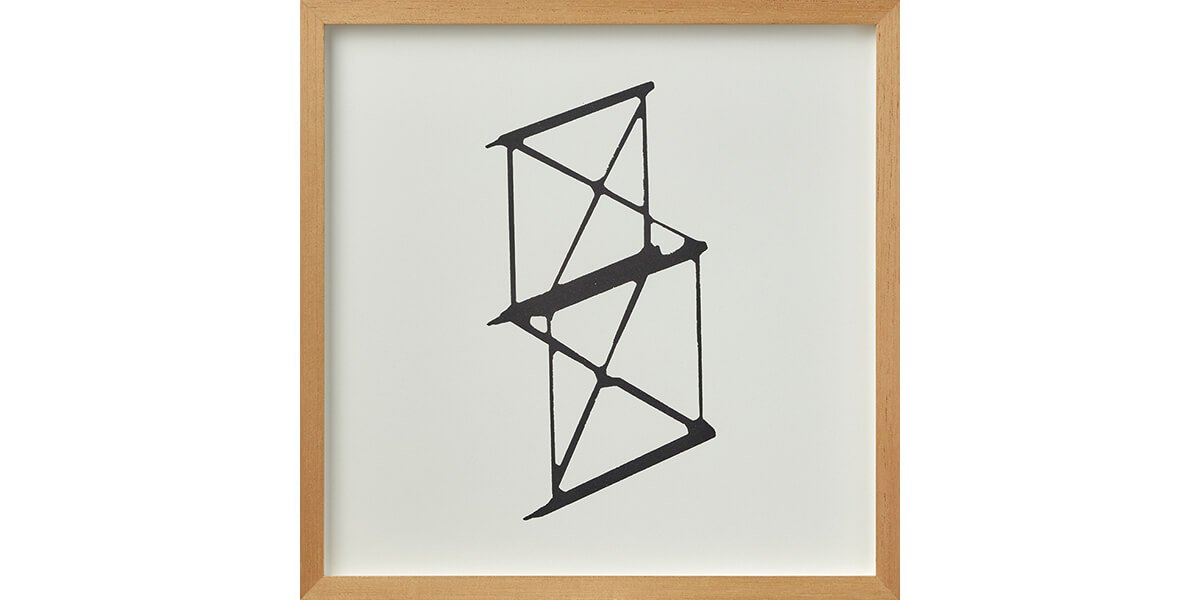 Contemplando estas probables fisuras, Aljovín se propone estudiar el objeto desde todos sus ángulos en búsqueda de certezas. Sin perder su carácter lúdico, se vale de un módulo —que no es otro que la reproducción de la pieza matriz a escala menor— para registrar la proyección de su sombra en movimiento. El resultado es una serie de 30 serigrafías que exponen, por un lado, la imposibilidad de construir una estructura superior desde el individualismo; y por otro, cómo un movimiento —por más simple que parezca— puede cambiar la perspectiva tanto del objeto como de quien lo observa. Por ello, la disposición lineal de la serie serigráfica en la pared demanda, a su vez, el desplazamiento del espectador como metáfora de la construcción del espacio.
