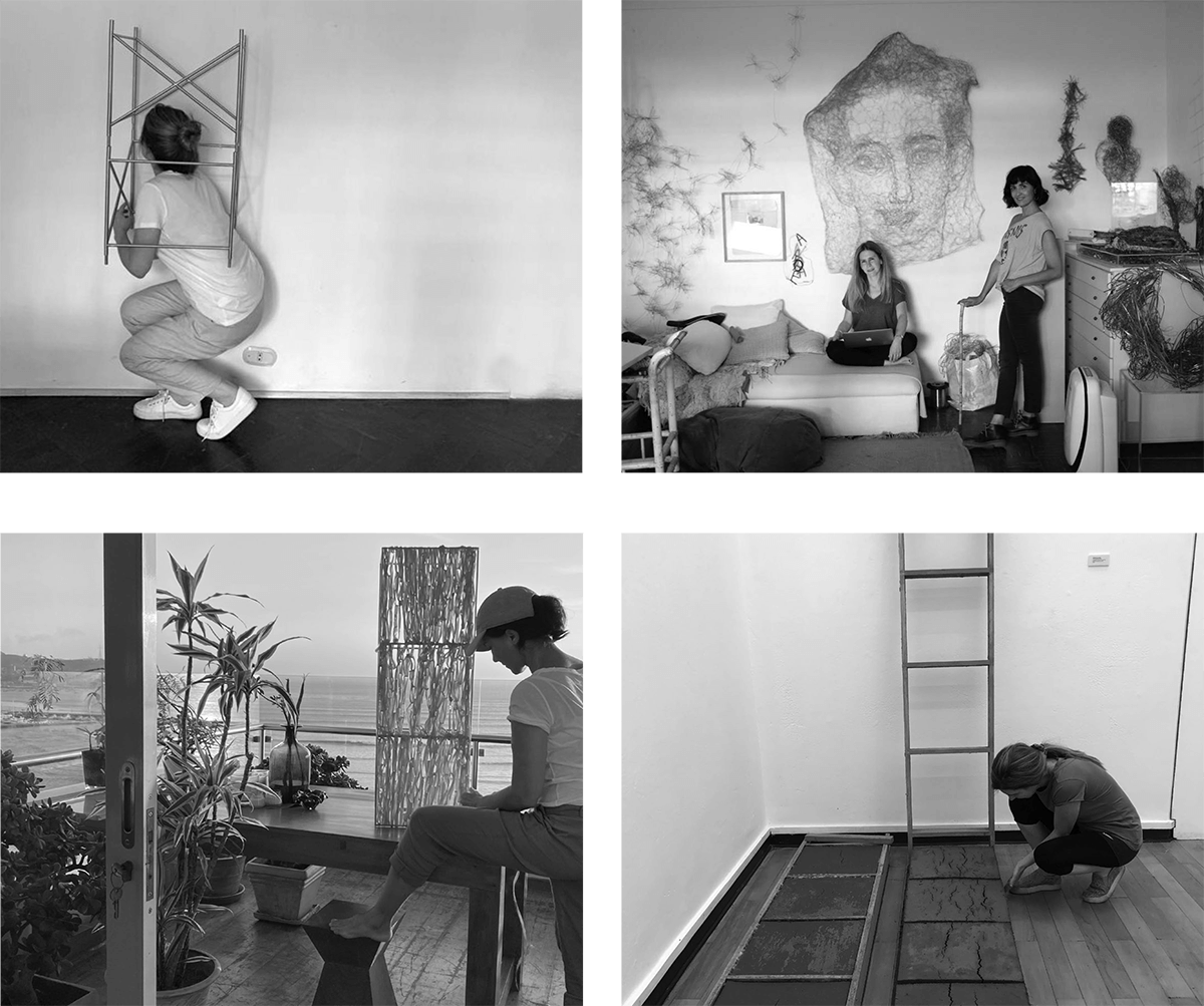 Cuando en febrero del 2020 Nani Cárdenas y Micaela Aljovín me invitaron a curar la muestra bipersonal de Andamio, ambas estaban deseosas por abordar el concepto ‘casa’. Nadie imaginó que un mes después la OMS declararía la pandemia por el covid-19 y el Perú se declararía en estado de emergencia nacional y aislamiento social obligatorio. La incertidumbre se alojó en todos los rincones. Los intereses de las artistas mutaron de acuerdo a las necesidades y pulsiones que surgieron en el encierro, en el reencuentro tanto con el espacio como consigo mismas. Había más preguntas que respuestas, las sigue habiendo. Formas de habitar es el resultado del ejercicio de diálogo e intercambio que durante meses nos propusimos realizar con el objetivo de responder algunas de las tantas preguntas que surgieron en el camino. Las posibles respuestas cobraron materialidad en manos de las artistas.